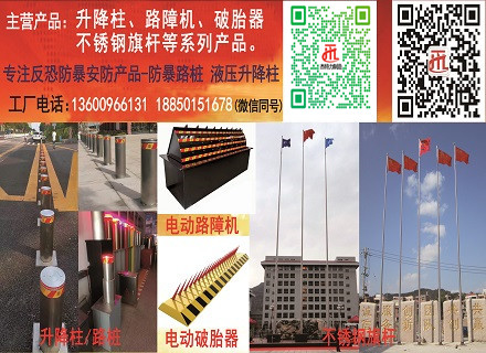 杰特力升降路樁&路障的應(yīng)用升降路樁廣泛用于城市交通、及國家重要機關(guān)大門及周邊、步行街、高速公路、收費站、機場、學(xué)校、銀行、大型會所、停車場等許多場合。通過對過往車輛的限制,有效地保障了交通秩序即主要設(shè)施和場所的安全。 1、國家機關(guān)和等重要單位大門:安裝升降防暴路障,可電動、遙控或刷卡等方式控制升降,有效阻止外單位車輛進入和不法車…post time:2019-07-05查看詳情 >>